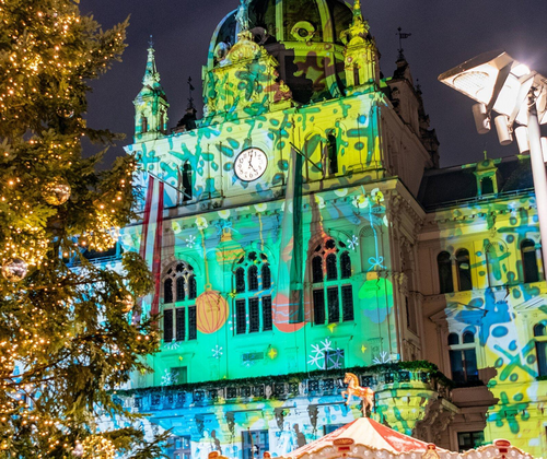 Die feierliche Illumination des Weihnachtsbaums findet am Samstag, 29. November 2025 um 16:00 Uhr statt - im Anschluss wird die Eiskrippe im Landhaushof eröffnet!