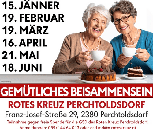 Plaudern, lachen, Kaffee trinken und neue Freundschaften schließen - das ist bei unserem Gemütlichen Beisammensein, jeden 3. Dienstag/Monat von 15-17 Uhr möglich.