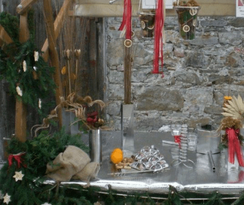 Neben Handwerk und Kunst aus Holz, Garn, Wolle, Stoff, Wachs werden auch künstlerische Werke der Patschenstrickerinnen, Drechsler und Kripperlbauer geboten. Glaskünstler zeigen ihre selbstgemachten Christbaumkugeln, Schalen, Kreuze, Bilderrahmen und Schmuck.