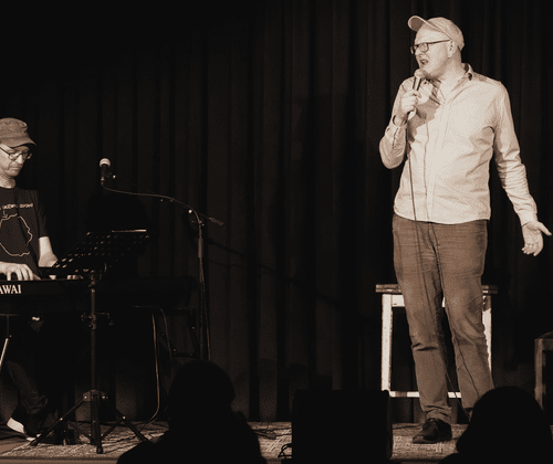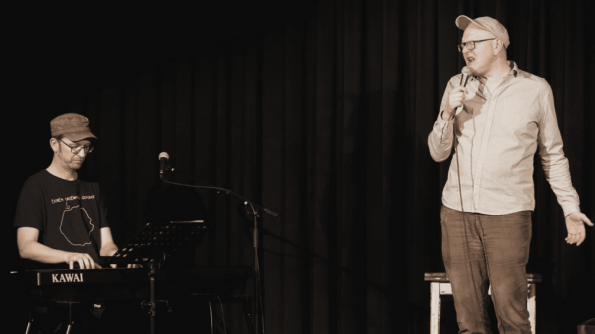 Michael Hornek hat die Gabe, sich mindestens so harmonieverströmt wie verrückt geworden in Stücke zu versenken. Seine Klaviatur switcht dabei zwischen Brecht, Hollywood, Zappa, Schubert, Dracula, Jazz und Dekonstruktionsmassaker. Die instrumentalen und textlichen Aussagen dieses Duos sind unüberhörbar.