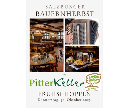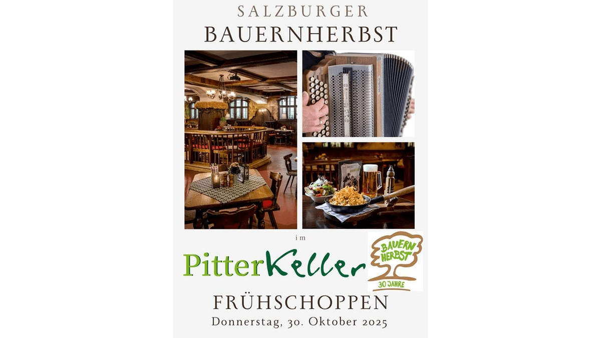 Von 10.30 bis 14.00 Uhr erwartet Sie stimmungsvolle Volksmusik vom Oberkrainer-Duo „Zwoatakter“ und feinste Bauernherbst-Schmankerl. Genießen Sie die Atmosphäre eines der ältesten Bierkeller Salzburgs während das IMLAUER-Team Sie kulinarisch verwöhnt. Reservierungen sind unter pitterkeller@imlauer.com oder Telefon: +43662 88978 840 empfohlen.