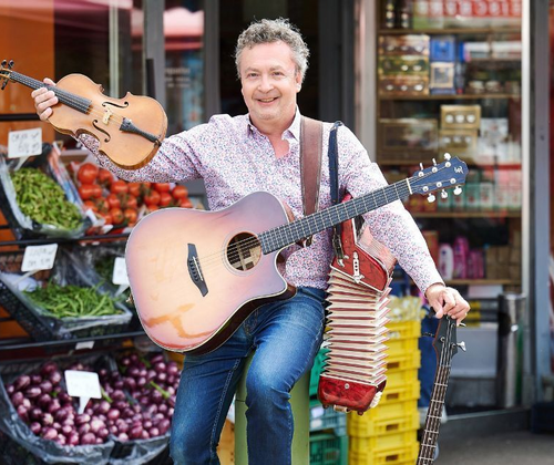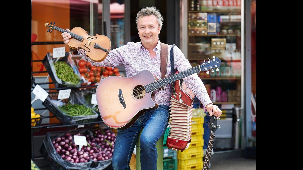 Seine Instrumente – Gitarre, Piano, Bass, Akkordeon und Geige