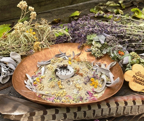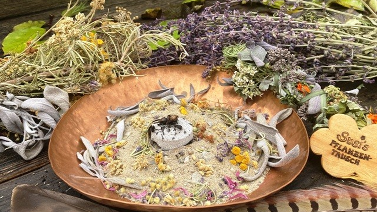 Bei diesem Workshop schnüren wir ein Räucherbündel mit frischen und getrockneten Kräutern (z.B. Beifuß, Salbei, Rainfarn, Schafgarbe, Lavendel, Thymian, Ysop, Rosmarin etc.), das mit nach Hause genommen werden kann. Optional kann auch ein Federwedel gebunden werden, zum Rauch zufächern. Dann verräuchern wir mit Räucherkohle und Stövchen viele verschiedene selbst gesammelte Kräuter (siehe oben), Wurzeln (z.B. Alant, Beinwell, Nelkenwurz), Rinden (z.B. Birke, Holunder, Weide) und Harz (Kiefer) und erfahren Wissenswertes über deren Wirkstoffe.