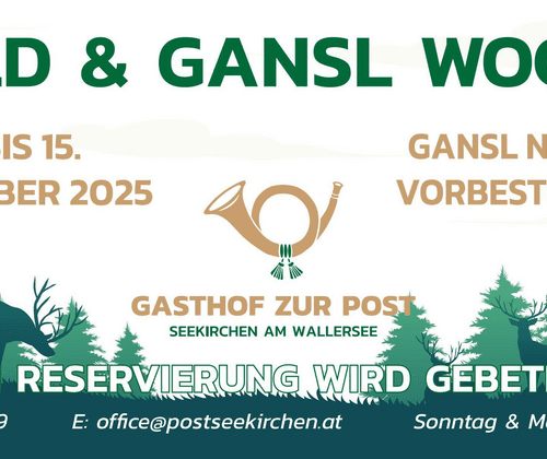 Spezialitäten aus der Region! Wir bieten Ihnen Zeit für kleine Köstlichkeiten und große Genüsse. Im Mittelpunkt steht die feine traditionelle österreichische Küche. Immer wieder veranstalten wir Spezialitätenwochen und haben wieder ein besonderes Herbst-Schmankerl vorbereitet: Von 11.11.-15.11.2025 findet bei uns wieder die "Wild- & Ganslwoche" statt. *Gansl nur auf Vorbestellung!