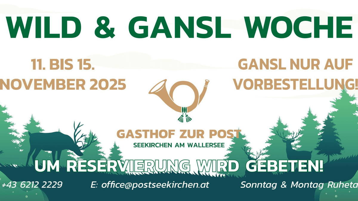 Um Reservierung wird gebeten unter 06212/ 2229 oder office@postseekirchen.at Auf Ihren Besuch freut sich Fam. Gmachl-Wintersteller & Team!