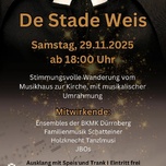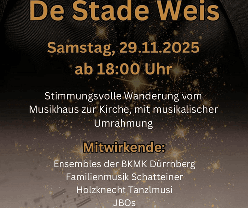 Stimmungsvolle Wanderung vom Musikhaus (Nähe Salzbergwerk) zur Wallfahrtskirche Maria Dürrnberg mit musikalischer Umrahmung. Ausklang mit Speis und Trank im Probelokal der BKMK Dürrnberg.