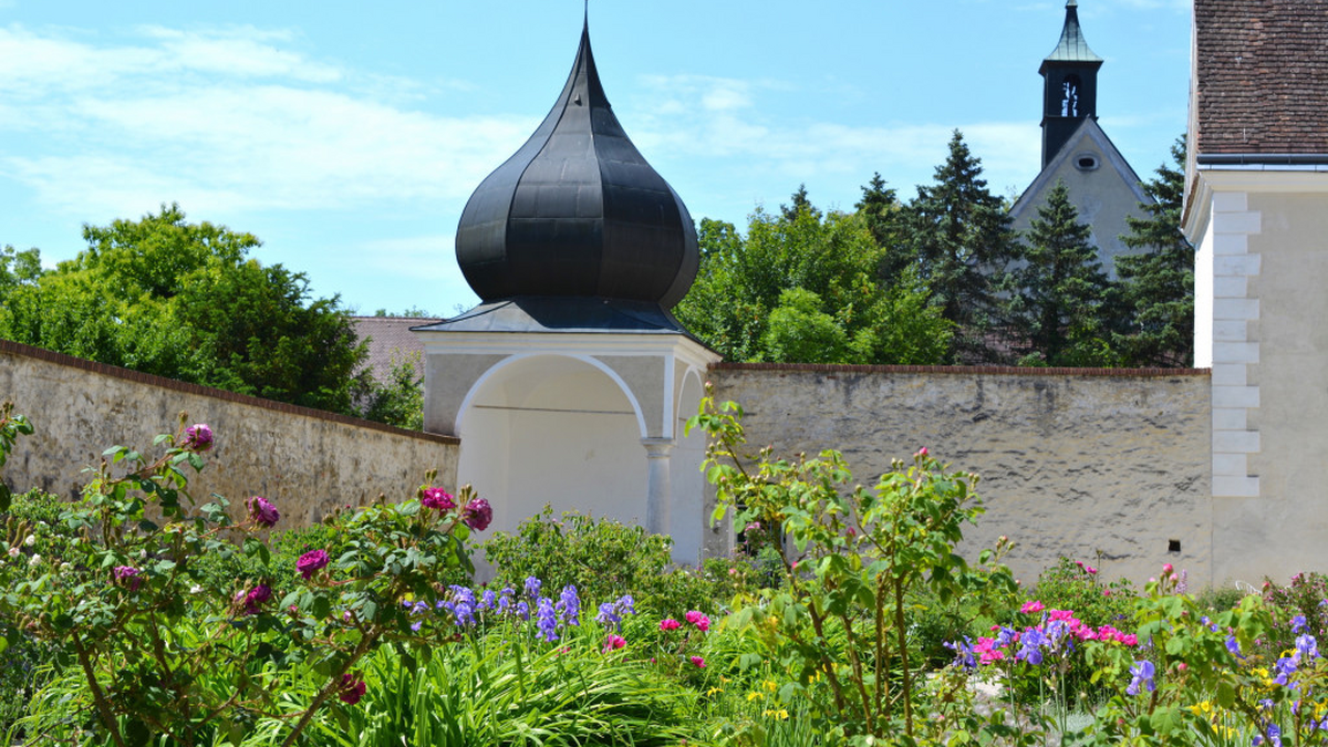Einen schönen Kontrast zum barocken und nach Formen angeordneten Kaisergarten, bietet der Kreuzgarten im Herzen der Kartause, der aktuell von vielen Wildkräutern besiedelt ist.