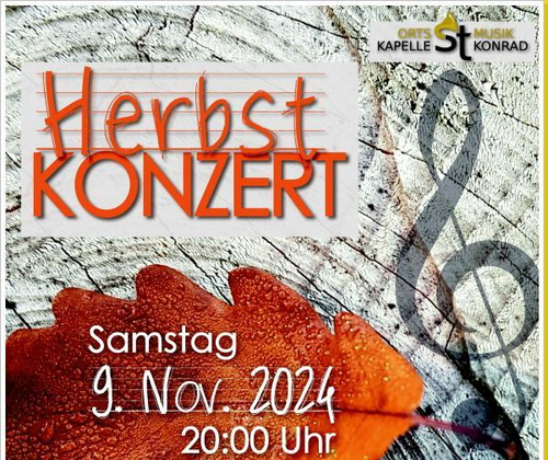 Die Ortsmusikkapelle St. Konrad lädt wieder sehr herzlich zum Herbstkonzert in der Mehrzweckhalle St. Konrad ein!