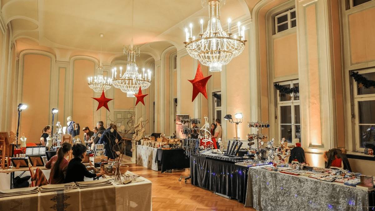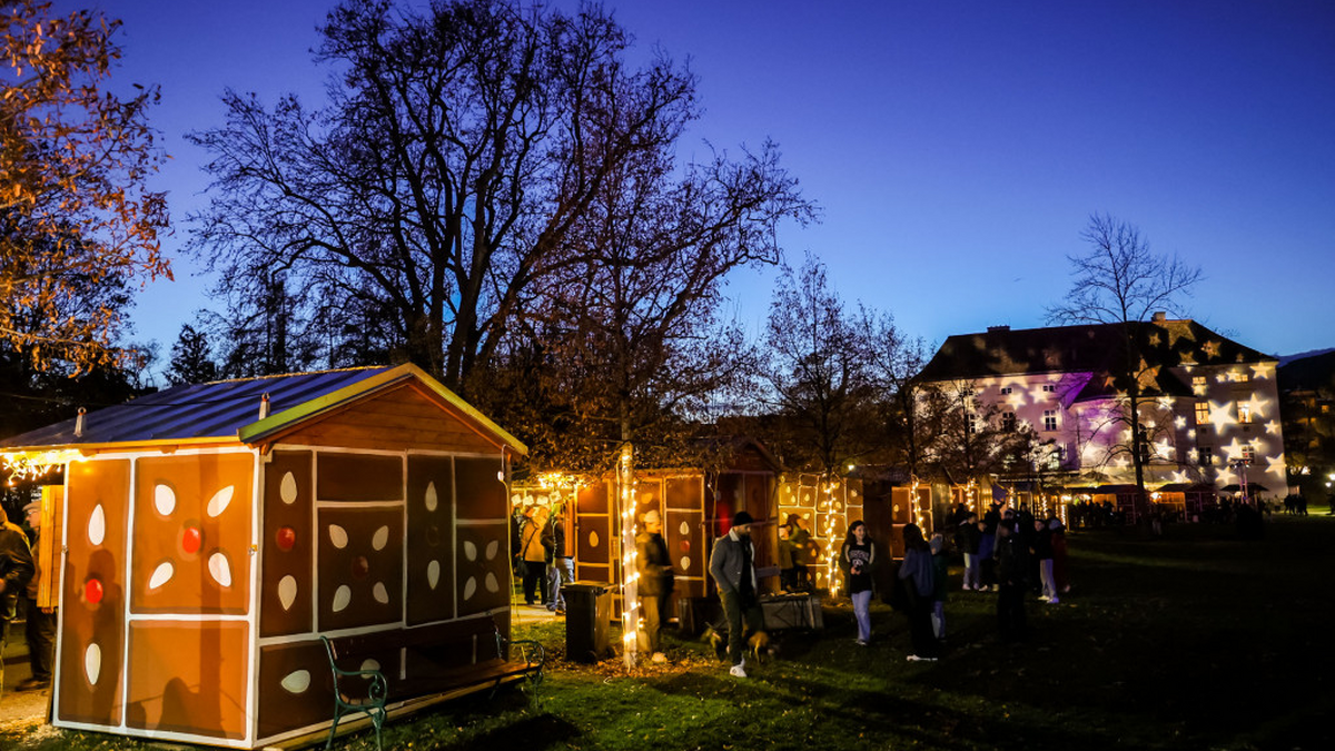 Im stilvoll dekorierten Schloss bummeln Sie an über fünfzehn originellen Kunsthandwerksständen vorbei. Im Schlosspark treffen Sie auf lebende oder liebevoll per Hand illustrierte Märchenfiguren. Schmankerlhütten mit Honig, Lebkuchen, Wild- und Käsespezialitäten, Bäckereiprodukten und vielem mehr lassen behagliche Weihnachtsstimmung aufkommen. Vöslauer Vereine und Gastronome kümmern sich um Ihr leibliches Wohl und bieten ein vielfältiges Angebot an Punsch, Glühwein und Snacks. Ein Maroni- und Bratkartoffelstand gehört selbstverständlich auch dazu, ebenso wie süße Waffeln und Kaspressknödel. In der Charity Hütte am Schlossplatz kommt jeder eingenommene Euro dem guten Zweck zugute: Hier wird für den Sozialfonds der Stadtgemeinde gesammelt.