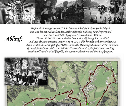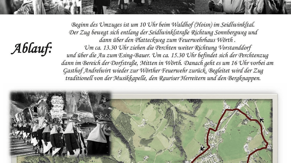 Der 6. Jänner steht ganz im Zeichen der Kultur, der Tradition und der Historie des Raurisertales. Beim Perchtenumzug werden uralte Masken, die lang verschollen schienen, vorgeführt. Sie erfahren Wissenswertes über vergangene Geschichten, vergessene Geschehnisse und Bräuche im Raurisertal.