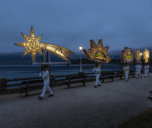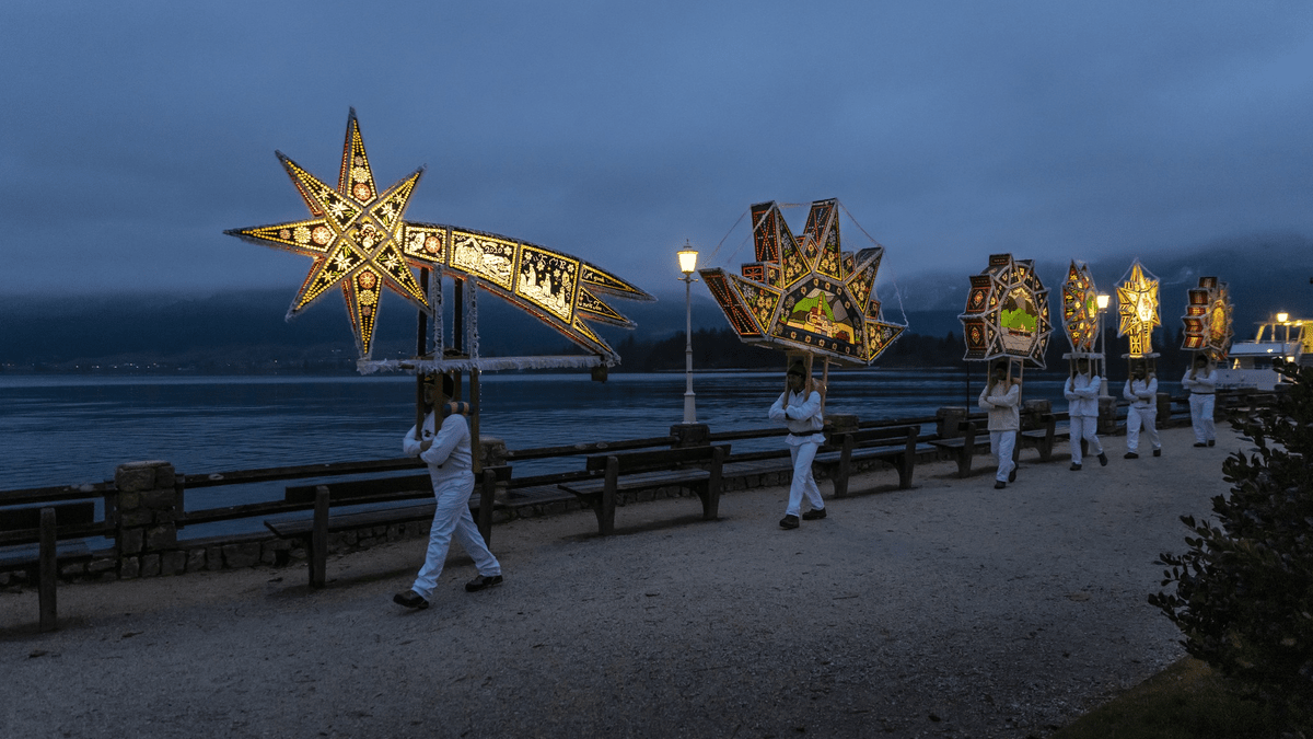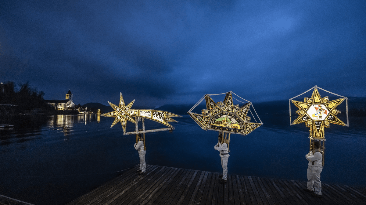 Die "Glöckler" ziehen in weißen Gewändern in den Ortschaften von Haus zu Haus. Mit ihren farbenprächtigen, kunstvoll gearbeiteten, hell leuchtenden Glöcklerkappen bieten sie ein wunderbares Bild, wenn sie alle genau im gleichen Schritt ihre Bahnen, ihre Kreise, Spiralen und Achter ziehen, wenn ihre Kappen – kunstvolle Gebilde wie Sterne, Halbkreise, Figuren, Kirchen und Jahreszahlen - leuchten und die dunkle Nacht erhellen.