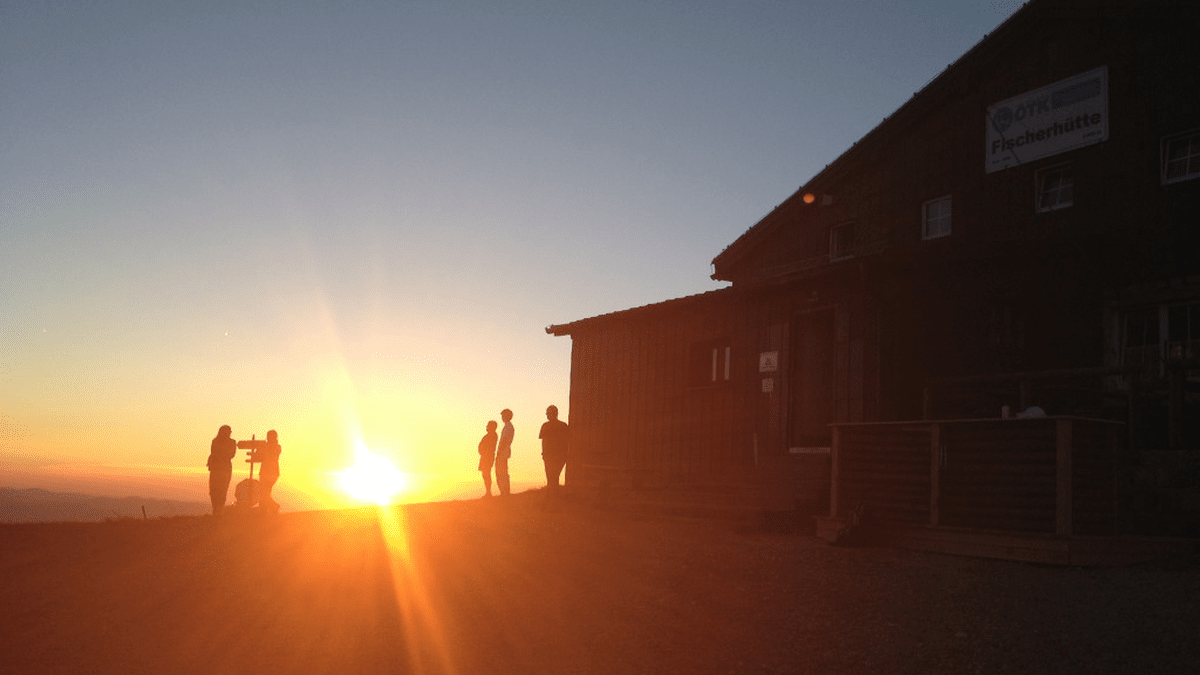 Sonnenaufgang auf der Terrasse der Fischerhütte