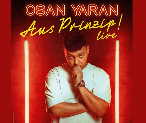 „Aus Prinzip!“ - so heißt das brandneue Programm von Osan Yaran. Ehemann, Familienvaterund Ex-Lidl-Filialleiter. Mit seinen täglichen Reels im Internet erreicht der mehrfachpreisgekrönte Comedian stets hunderttausende Zuschauer. Er baute sich so in kurzer Zeiteine riesige Fangemeinde auf, die auch schnell seine Live-Auftritte stürmte. Nach einer erstenausverkauften Tour folgt nun mit „Aus Prinzip!“ sein zweites Programm, mit dem derhoffnungslose Idealist ab Herbst 2024 durch Deutschland, Österreich und Schweiz aufTournee geht!Seid dabei, wenn er den Wahnsinn des Alltags thematisiert und seine Erlebnisse pointiert adabsurdum führt. Mit perfektem Timing spricht er darüber, dass man Klischees mit Humorbegegnen muss, warum Teenager ein schwarzes Loch für Nahrungsmittel sind und Frauenauch gerne mal pupsen dürfen. Am Ende wird sich herausstellen, ob Osans Alltag Wahnsinnist oder doch eher sein Blickwinkel.Zu Osan Yaran:Der extrem extrovertierte Komiker, der durch seine Energie, seinen Blickwinkel und seinespitzen Pointen das Publikum begeistert und mitreißt, nimmt Sie mit in seine Welt. Osan Yaranist Sieger zahlreicher Comedy-Preise. Zuletzt gewann er den dotierten und hoch angesehenenPublikumspreis beim “Stuttgarter Besen” und auch als Moderator hat er einiges vorzuweisen:Von 2017 bis 2020 war er der Host des Hot Shots im “Quatsch Comedy Club”; in Shows wie„Nightwash“ ist er gern gesehen und auch der WDR bucht regelmäßig Osan Yaran für diverseShows, zuletzt als Moderator für die 1-Live Hörsaal-Comedytour 2023. Nachdem das Corona-Virus sämtliche Shows von Osan Yaran lahmgelegt hatte, fand er neue Kraft und Zuversichtin der RTL-Streaming-Show „Unbreakable“. Osan war einer von zehn Prominenten, die sichauf eine ganz besondere Reise begaben und zur Inspiration zahlreicher Zuschauer:innenwurden.