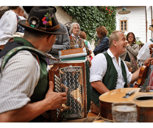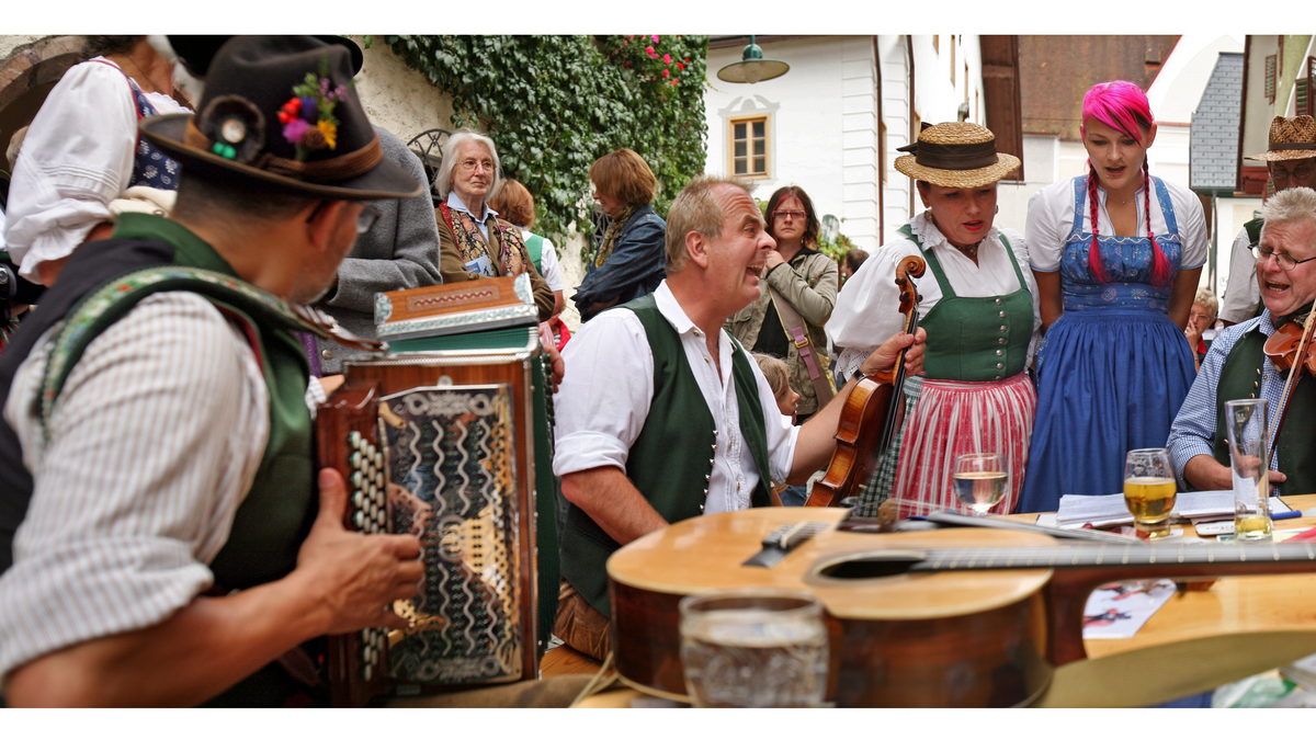 Genieße diese tolle Atmosphäre! Spielt das Wetter nicht so mit, wird in den umliegenden, gekennzeichneten Lokalen gegeigt und gefidelt.