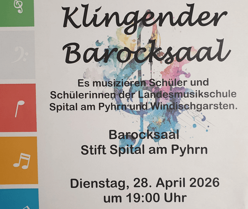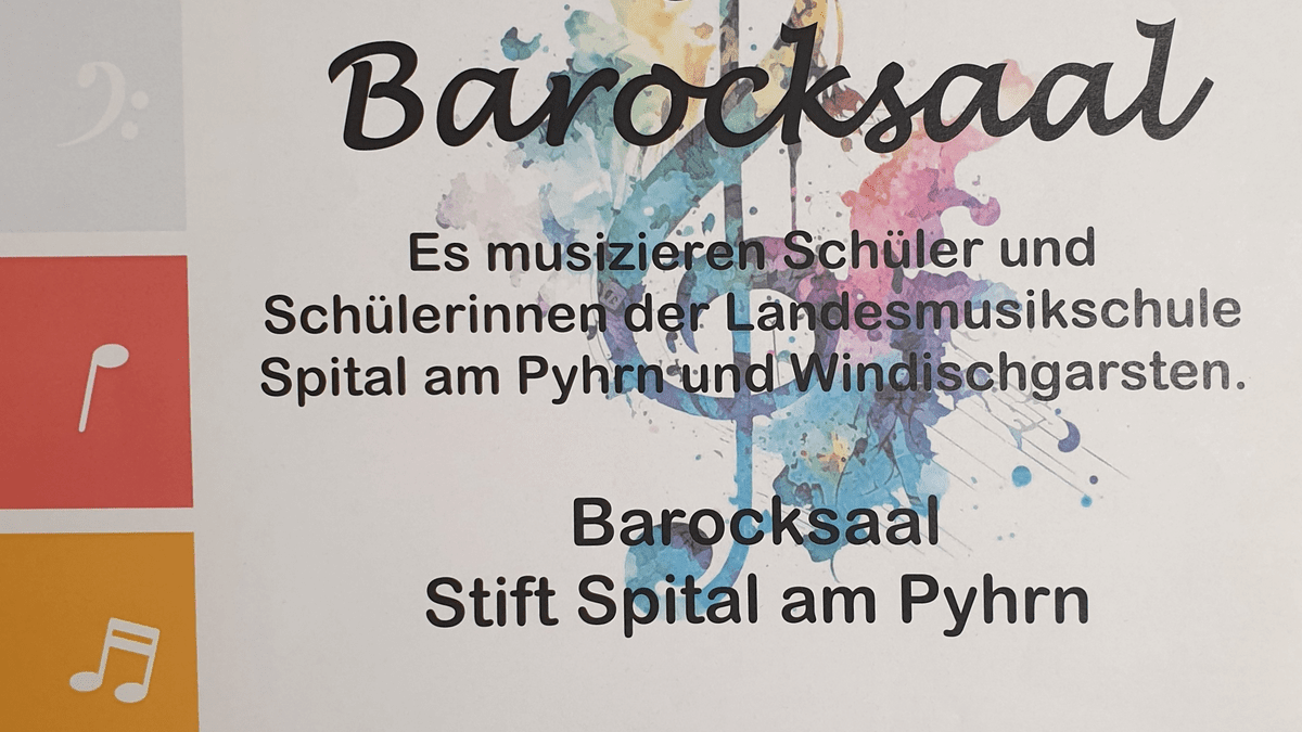 Gemeinsam gestalten die Musikschüler ein buntes Konzert im Barocksaal des Stifts in Spital am Pyhrn.
