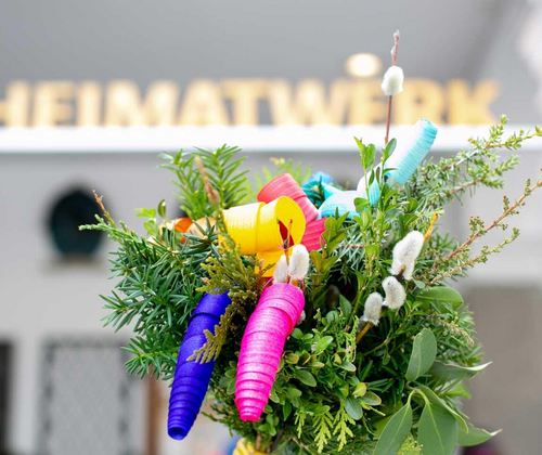 Das Salzburger Heimatwerk erstrahlt rund ums Palmbuschenbinden im österlichen Glanz. Über 1200 kunstvolle Ostereier von Künstlern aus ganz Österreich werden liebevoll präsentiert. Ob die alte Ritztechnik, Stanzbilder, Aquarellbemalung oder Ostereier aus Holz – es ist für jeden Geschmack etwas dabei. Darüber hinaus findet man im Salzburger Heimatwerk liebevoll gefertigten Osterschmuck sowie handbestickte Weihkorbdeckerl und viele kleine Geschenksideen.
