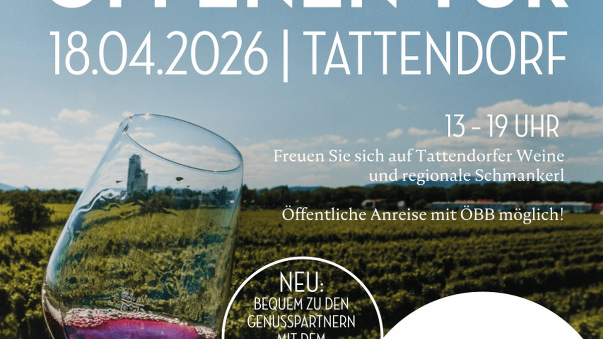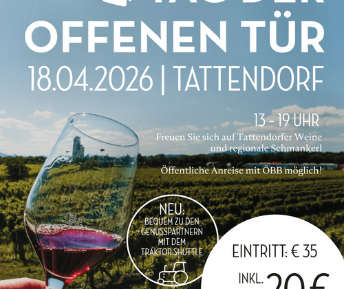Tattendorfs Winzer laden zur Verkostung. Die Winzer öffnen von 13 – 19 Uhr ihre Kellertüren und bieten den Gästen die Möglichkeit zur Verkostung und zum Ab-Hof-Verkauf.