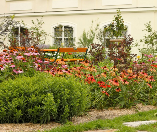 Der Garten zeichnet sich durch seine wildromantische, abwechslungsreiche und den "Natur im Garten" - Richtlinien entsprechenden Grünerholungszonen aus, mit regionalen Blühpflanzen, Naschgarten, alten Stein- und Holzelementen, Trockenmauern und bienenanziehenden Staudenbeeten.
