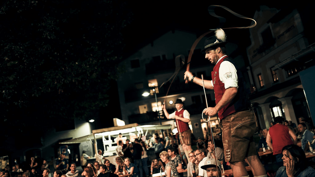 Am Marktplatz in Wagrain finden regelmäßig die traditionellen Heimat- & Brauchtumsabende inklusive Ausschank statt. An diesen netten Abenden stellen die Volkstanz- und Schuhplattlergruppe Wagrain mit Leidenschaft ihr Können unter Beweis. An einigen Abenden sind auch die Wagrainer "Herreiter" & "Goaßlschnalzer" mit dabei. Goaßlschnalzen ist ein österreichischer Brauch. Der Name erklärt sich aus der Bezeichnung für die Fuhrmannspeitsche, im Dialekt Goaßl. Schnalzen bezeichnet das durch die schnelle Bewegung entstehende laute Knallen mit der Peitsche. Genießt die Abende bei freiem Eintritt und Ausschank.