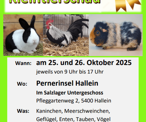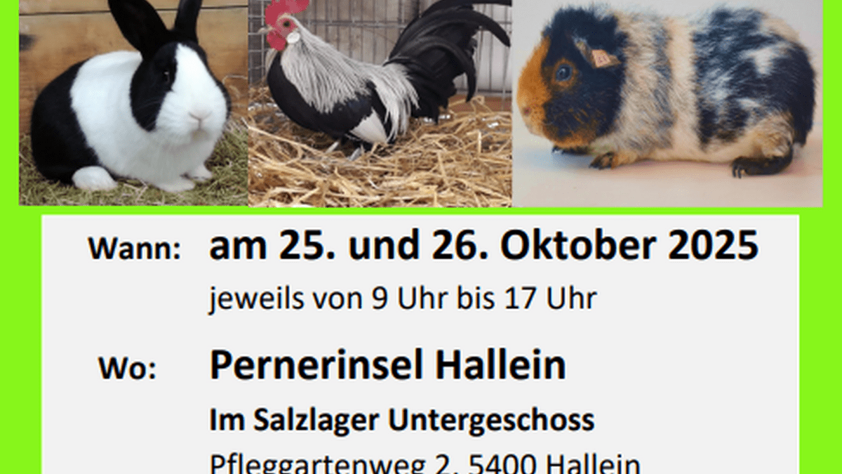 Der Kleintierzuchtverein S13 Tennengau veranstaltet am 25. und 26. Oktober 2025 im Salzlager Untergeschoss auf der Pernerinsel in Hallein seine traditionelle Kleintierschau.