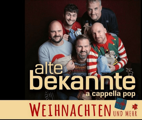 ALTE BEKANNTE laden herzlich dazu ein, sich in besinnlicher, aber natürlich auch fröhlicher Atmosphäre auf Weihnachten zu freuen. Schöne traditionelle Weihnachtslieder im einzigartigen ALTE BEKANNTE-Sound wechseln sich ab mit weihnachtlichen Songs aus eigener Feder und natürlich den beliebtesten Hits der Vokal-Formation, die ihr Ziel konsequent verfolgt: Euch einen besonderen und unterhaltsamen Abend zu verschaffen.