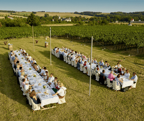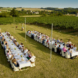 Erleben Sie einen außergewöhnlichen Abend inmitten der Weingärten: Begrüßt werden Sie mit einem Aperitif bei der stimmungsvollen Hiatahütte, bevor Sie ein kurzer Spaziergang zwischen den Reben zur festlich gedeckten Tafel führt. Dort werden Sie vom Gasthof Berger mit einem raffiniert komponierten 5-gängigen Menü, begleitet von erlesenen Weinen der Weingüter Humer und Hagenbüchl, verwöhnt. Die Winzer:innen präsentieren ihre Weine persönlich und geben spannende Einblicke in deren Charakter und Herkunft. Für die musikalische Atmosphäre sorgt eine Blechbläsergruppe, die den Abend mit warmen Klängen untermalt.
