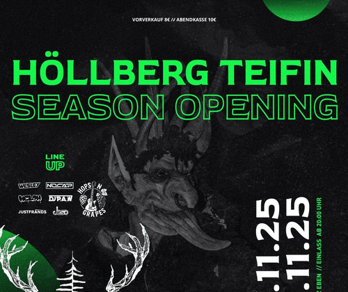 Hierbei gehts um Party, Party, Party! Wir sind schon heiß auf die kommende Krampussaison und wollen euch einfach richtig für das kommende Monat motivieren! Es werden keine Krampusse oder Showakte im Festzelt gezeigt! Das ist DAS Warm-Up für die kommende Saison! Was wird geboten? Großes Instagram Gewinnspiel 1 Live Band (Hops'n Grapes) & 6 DJs verteilt an 2 Tagen - party nonstop großes beheiztes Partyzelt Happy Hour für alle Longdrinks: 20:30 bis 21:30 Uhr Einige weitere Überraschungen! EINTRITT pro Tag : € 8,- € VVK | € 10,- AK Tickets sind bei den Mitgliedern der Höllberg Teifin sowie per Instagram-Nachricht erhältlich.