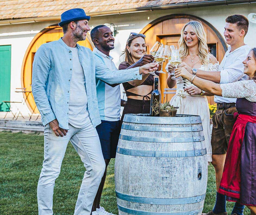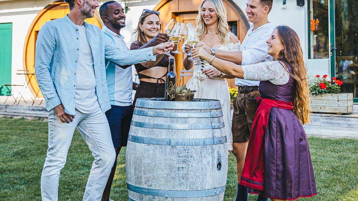 Urlaub mit Freunden im Weinfass mit Wellness Grub an der March