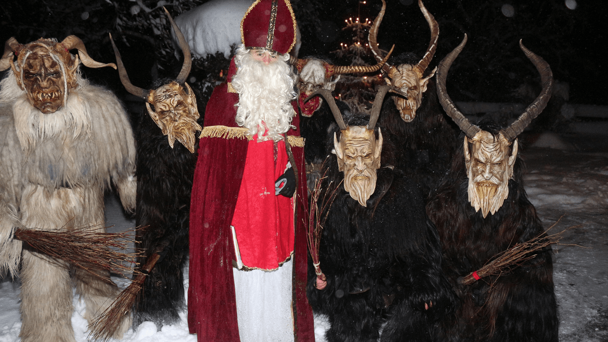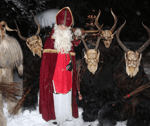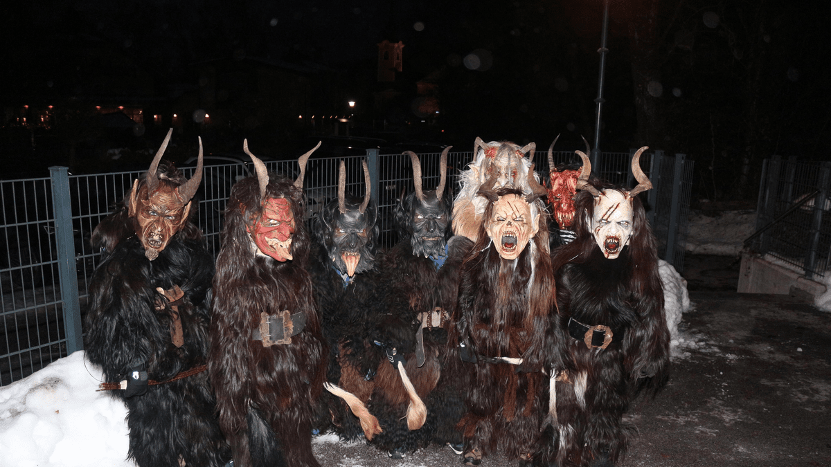 Krampuslauf der St. Jakober Weiherteufel mit Nikolaus und Kinderkrampussen am Weiher in St. Jakob.Ablauf: