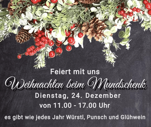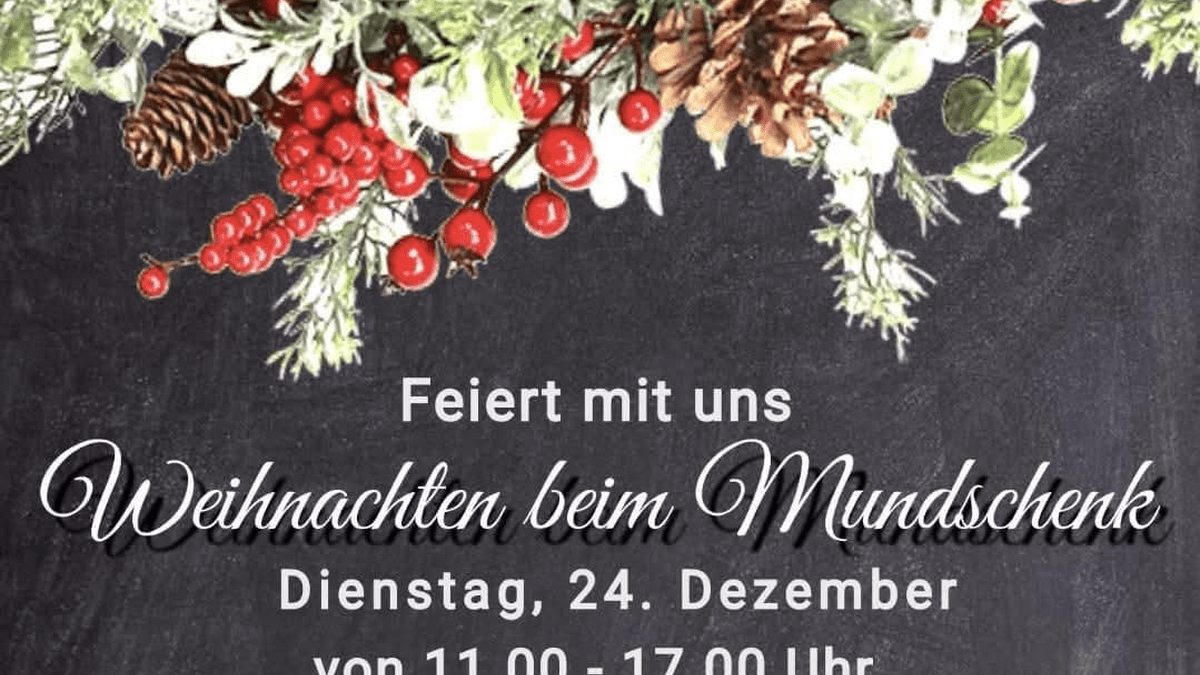Feiert mit uns "Weihnachten beim Mundschenk", am Mittwoch den 24.12.2025, von 11.00 bis 17.00 Uhr.