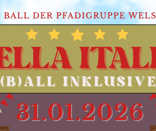 Die Pfadigruppe Wels lädt herzlich zum diesjährigen Pfadiball unter dem Motto „Bella Italia“ ein. Der Pfadiball ist jedes Jahr ein besonderes Highlight – ein gemeinsamer Abend, um bekannte Menschen wiederzusehen, gemeinsam zu feiern und um selbst das Tanzparkett unsicher machen. Für eine stimmungsvolle Atmosphäre ist gesorgt: eine Auswahl an Getränken und Speisen, eine Mitternachtseinlage, eine Tombola sowie viele weitere Highlights. – (B)All Inklusive!