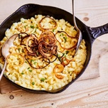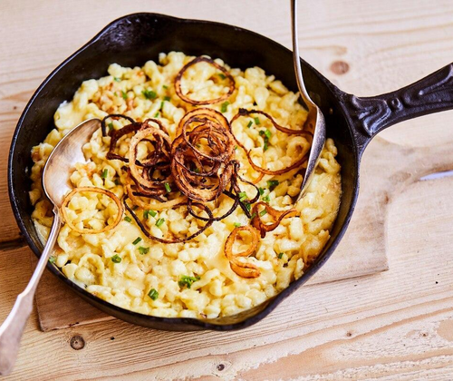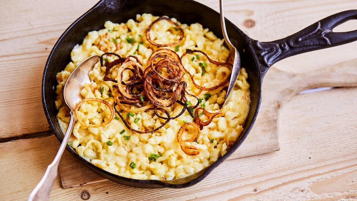 Sauerkraut, Knödel, Röstkartoffeln, Erdäpfelnidei, Kasnocken und Dessert.