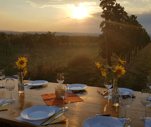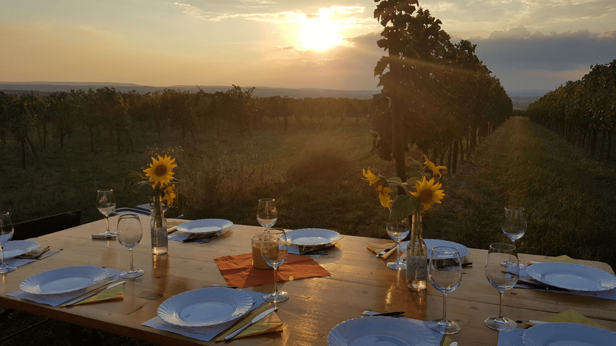 Nach dem Spaziergang werden Sie mit einer traumhaften Aussicht, einem atemberaubenden Sonnenuntergang und mehreren Weinproben sowie einem Winzerweckerl belohnt.
