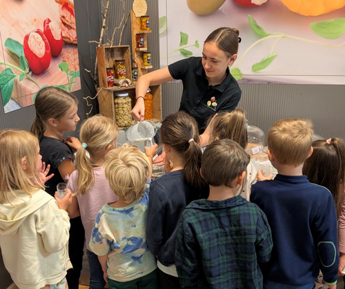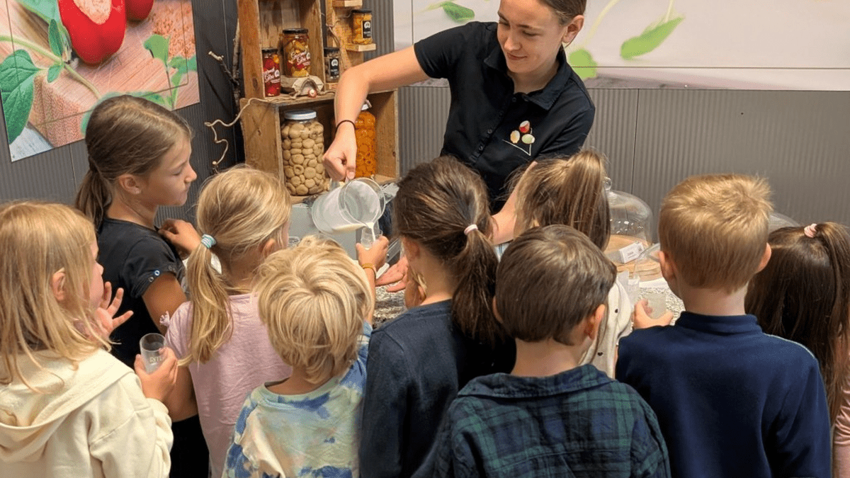 Kinder machen Käse in der Mini-Käserei