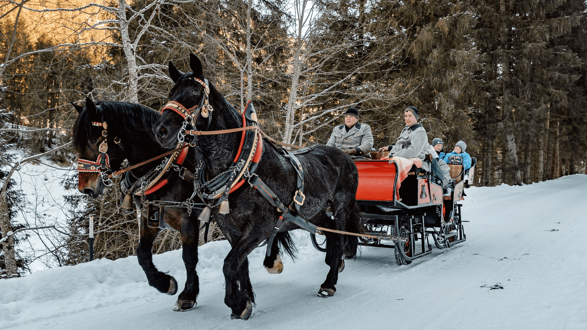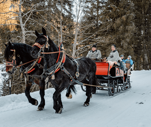 Genießen Sie die einzigartige winterliche Kulisse von Taxenbach bei einer gemütlichen Pferdekutschenfahrt mit Hannes Steger Treffpunkt: