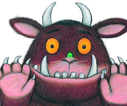 Wie oft wurde der zentrale Reim wohl schon vorgelesen? „O Schreck, o Graus, ich fürcht mich so, / es gibt ihn doch, den Grüffelo!“ – so heißt es beim Erscheinen des Monsters.
