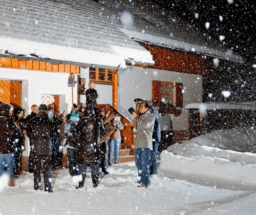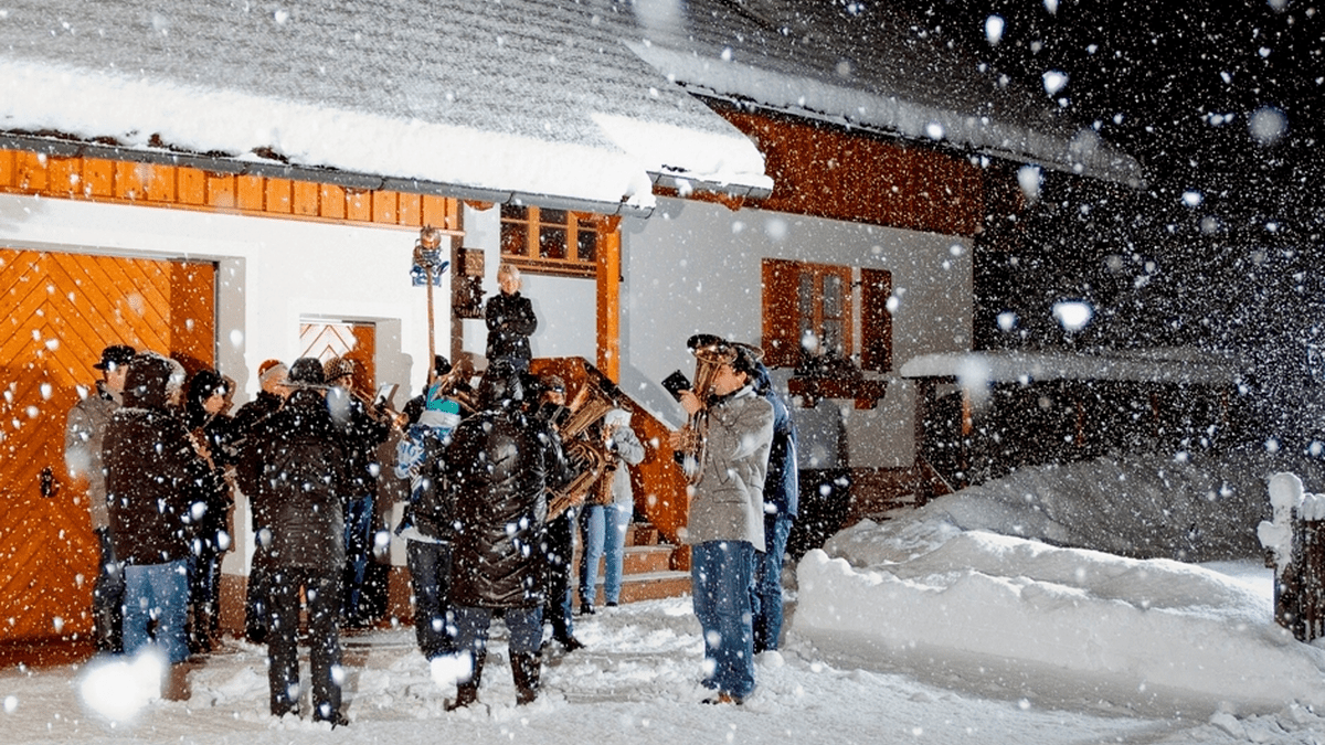 Traditionell teilt sich die Ortsmusikkapelle Obertraun in 3 Passen auf, wandert von Haus zu Haus und wünscht mit kurzen, stimmungsvollen Musikstücken ein gutes und gesundes neues Jahr.