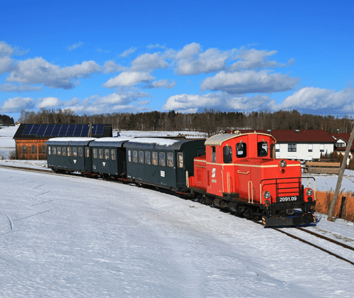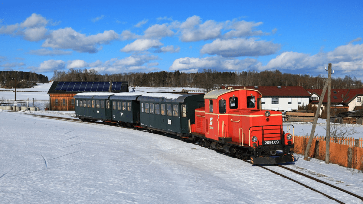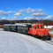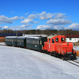 Bei der Fahrt durch den Weihnachtswald steigt das Christkind in den Zug