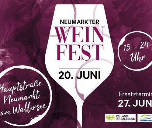 Am 20. Juni 2026 steht Neumarkt ganz im Zeichen von Wein und Genuss. Topwinzer aus den Weinbauregionen, Niederösterreich, dem Burgenland und der Steiermark sind zu Gast in Neumarkt und laden zum Verkosten ausgewählter Spitzenweine ein. Die edlen Tropfen aus den beliebtesten Weinregionen sowie kulinarische Schmankerl versprechen ein Fest für den Gaumen. Die Neumarkter Hauptstraße wird ab Mittag für den Verkehr gesperrt und mit Hilfe der teilnehmenden Winzer zur Neumarkter Weinstraße umfunktioniert. Die perfekte Gelegenheit, um verschiedenste Weine zu verkosten und diese auch gleich mit nach Hause zu nehmen. Auch die heimischen Gastronomen sind beim Neumarkter Weinfest stark vertreten und sorgen mit einer Vielzahl von kulinarischen Schmankerln für das leibliche Wohl der Besucher. Ersatztermin: 27. Juni 2026 Weitere Informationen folgen!