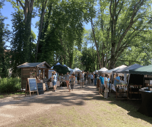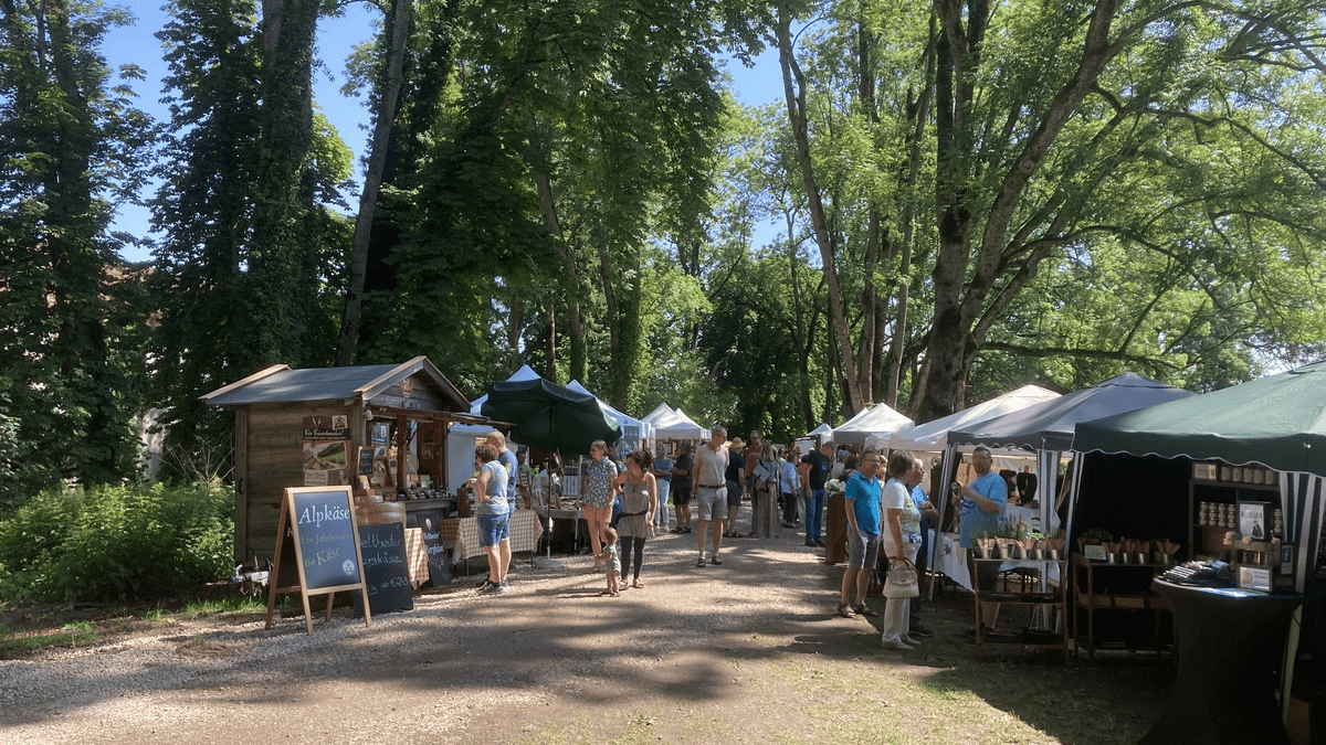 Das Angebot reicht von antiken Bilderrahmen, Ölgemälden, Schriften, Münzen, Büchern bis hin zu Porzellangefäßen, Blech- und Holzspielzeug sowie Möbelstücken aus längst vergangenen Zeiten. Zwischen den Markteinkäufen lädt der kulinarische Gastgarten beim Gartenpavillon des Schlosses zum gemütlichen Verweilen ein.