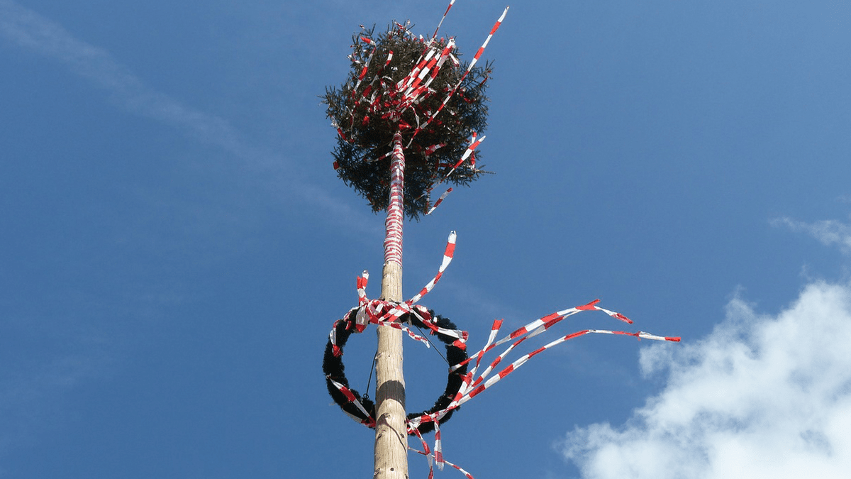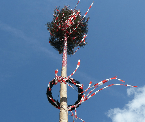 Traditionelles Maibaum Aufstellen