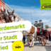 Der Pferdemarkt beginnt wie gewohnt am Vormittag. Zwischen 09:00 und 11:00 Uhr werden am unteren Hauptplatz an die 100 Pferde aufgetrieben. Zwei- bis fünfjährige Warm- und Kaltblutpferde werden von einer Fachjury bewertet.