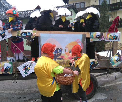 Von dem Gemeindeplatz aus und begleitet von der Ortmusikkapelle Obertraun, ziehen die kleinen Faschingsnarren mit ihren tollen Kostümen durch den Ort.