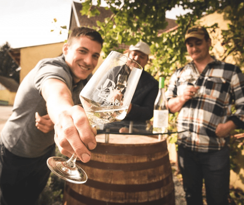 Mit dem Weintour-Band zwei Tage lang entspannt von Hof zu Hof probieren - rund 250 Weingüter laden zur Verkostung ein!