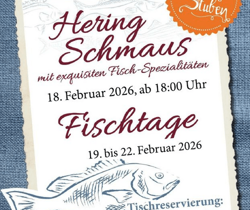 Bei den anschließenden Fischtagen von 19.02. - 22.02.2026. verwöhnen wir dich in unserem Restaurant "Zirben-Stuben" mit köstlichen Fischgerichten.