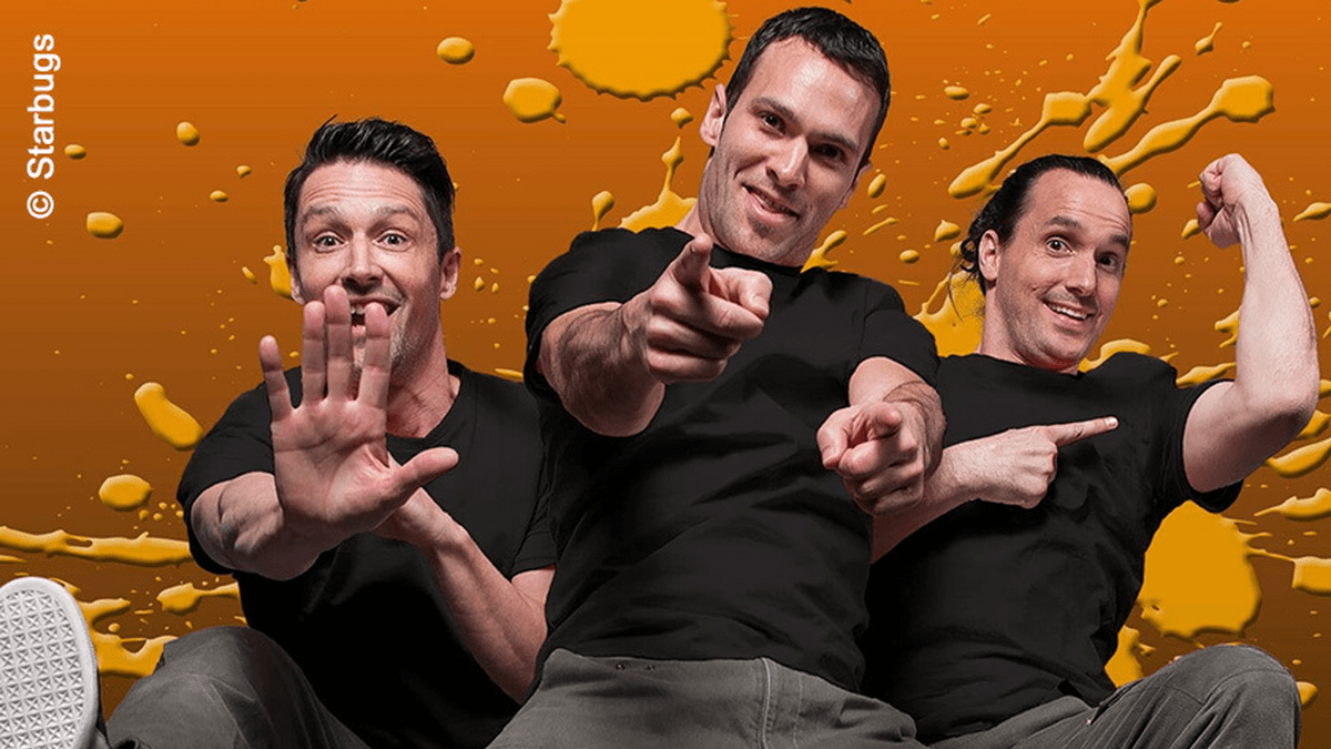 Von New York bis Tokio haben die drei Comedians aus der Schweiz mit einer einzigartigen Mischung aus Tanz, Akrobatik und Comedy in die Herzen des Publikums gespielt. Mit hinreißender, verblüffender Dynamik verlassen Starbugs Comedy in ihrer Show die bekannten Sphären der Comedy. Die drei coolen Typen ziehen ihr Publikum so umwerfend fantasievoll, witzig und listig herein, dass es aus dem Staunen nicht mehr herausfindet.
