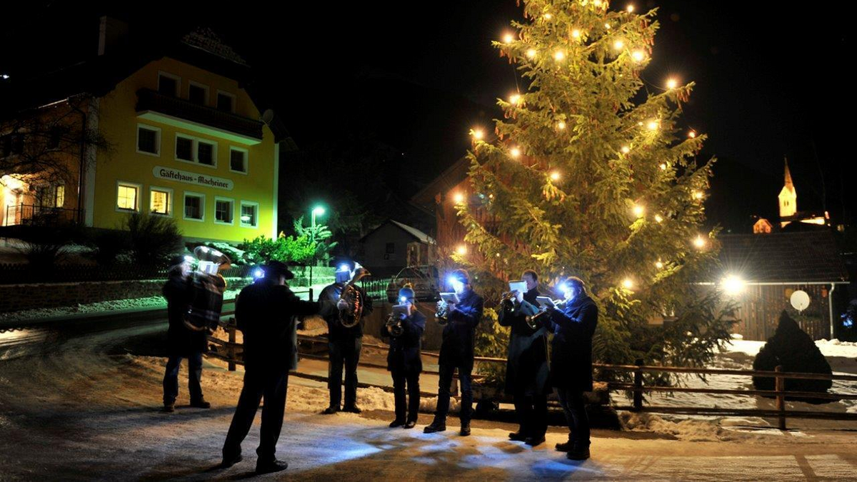 Stimmungsvolles Adventblasen an verschiedenen Plätzen im Ortsgebiet von Lessach.Blasbacher: 17:00 Uhr