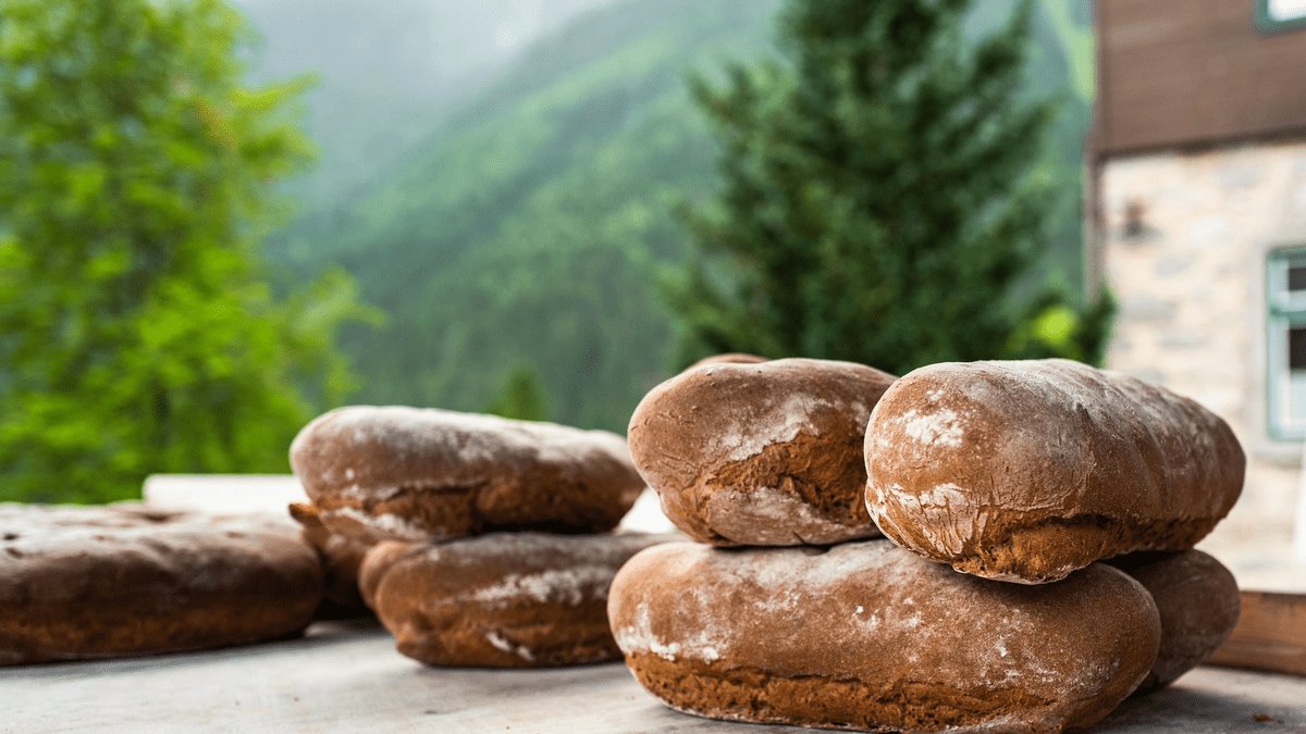 (wilde Kräuterbutter mit frischem Schwarzbrot aus dem Krimmler Brotbackofen) verspeisen.