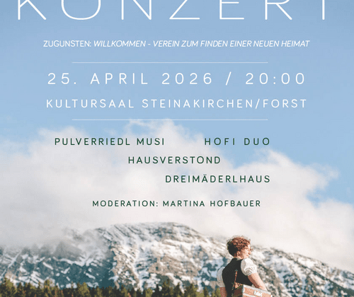 Die Musikgruppe Dreimäderlhaus aus Wolfpassing, veranstalten im April wieder ein Benefizkonzert im Kultursaal Steinakirchen/Forst. Das Konzert findet am 25. April 2026 um 20.00 Uhr statt.