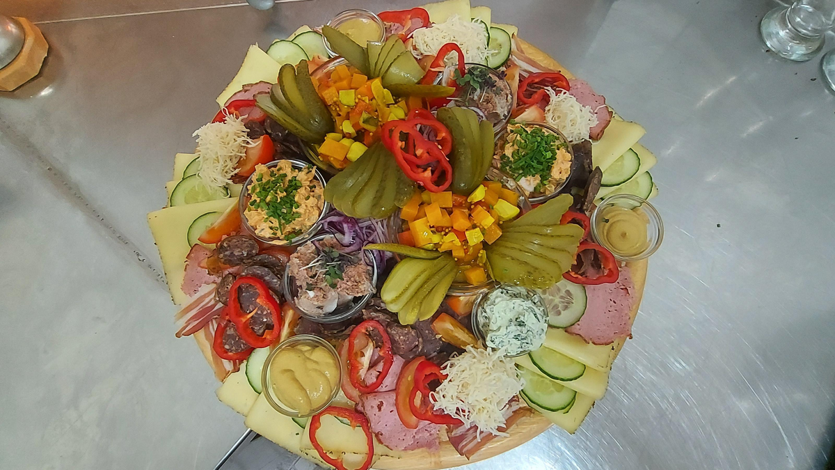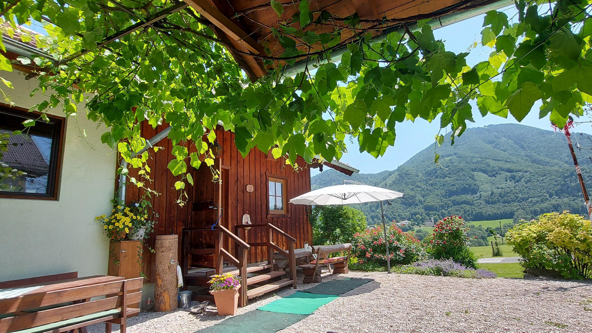 Wir servieren unseren selbst hergestellten Most, Apfel- und Hollersaft, dazu gibt es Jausenspezialitäten von Hirsch, Schwein und Truthahn. Aufstriche und Mehlspeisen - alles aus eigener Herstellung. Bleiben Sie ruhig etwas länger sitzen, Kinder können sich inzwischen auf Sandhaufen, Schaukel, Trettraktor und Co. austoben.